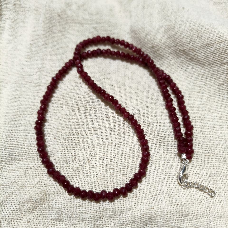 Collar de Plata de Ley con Cuentas Redondas Facetadas Lisas de 4 mm, Regalo de Boda Clásico con Rubí Rojo AAA++, Unisex