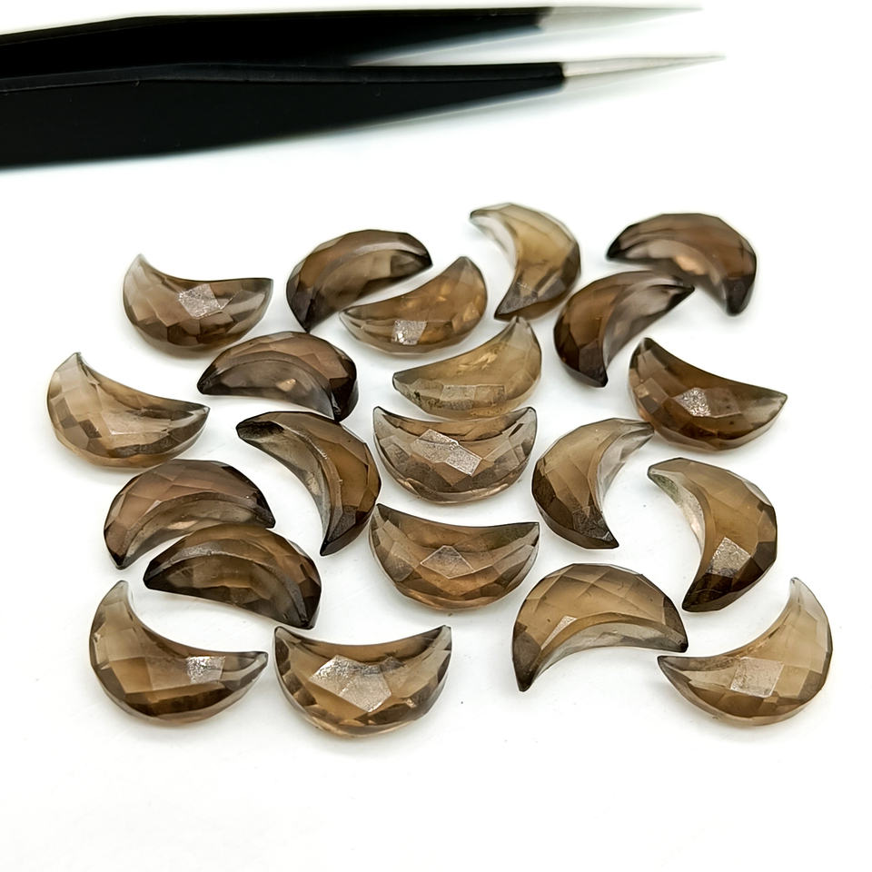Nombre del producto:Cuarzo ahumado Luna facetada perlas talladas