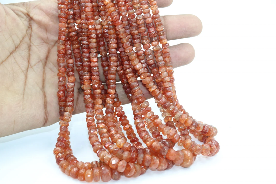 AAA Sunstone Faceted Rondelle Beads 4-5mm 16 pulgadas Sunstone Beads Strand para la fabricación de joyas