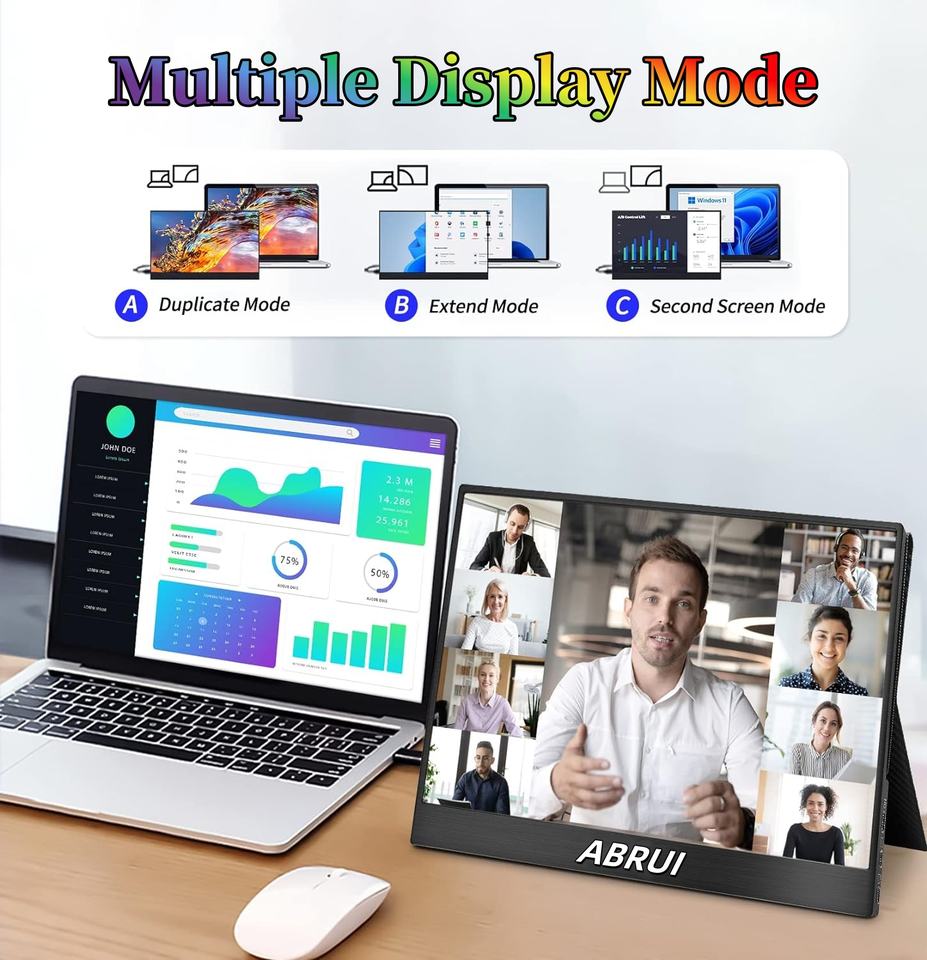 ABRUI Monitor portátil de 15,6 pulgadas 100% SRGB 350Cd/M segunda pantalla para portátil tipo C soporte de compatibilidad de señal 1920x1080