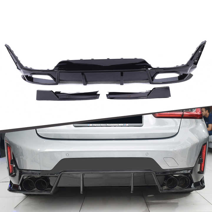 Difusor trasero ABS negro brillante estilo CP con puntas de escape accesorios de parachoques trasero de coche para BMW 3 Series G20 G28 LCI 2023 +