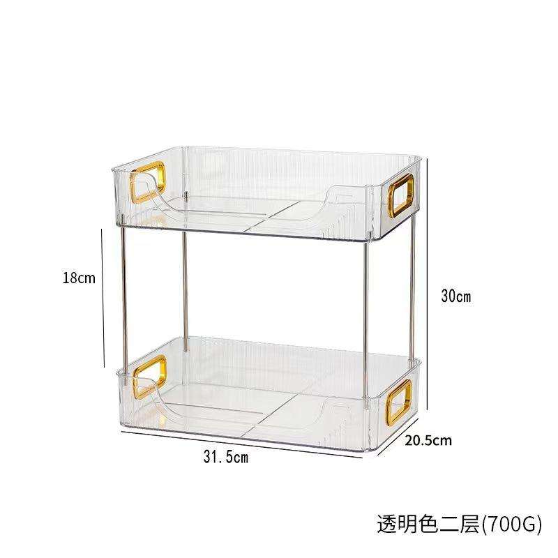 Bandeja de Almacenamiento Rectangular Plegable de Doble Nivel, Transparente, de Plástico ABS, con Asas Desmontables, para Cocina y Organización de Cosméticos