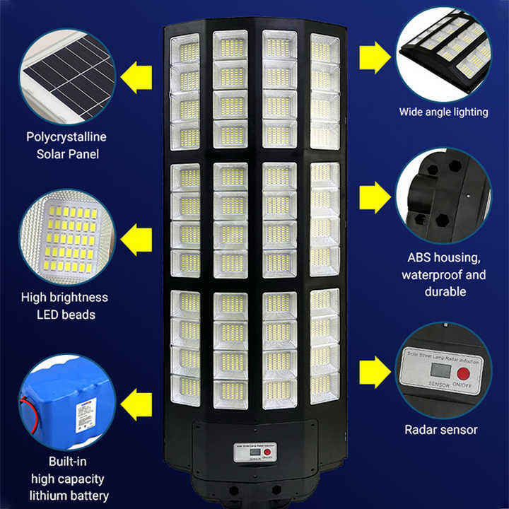 Lámpara Solar LED para Exteriores con Carcasa de ABS, Resistente al Agua IP66, para Carreteras, con Certificación CE/FCC, DC 6V 500W/1000W/1500W