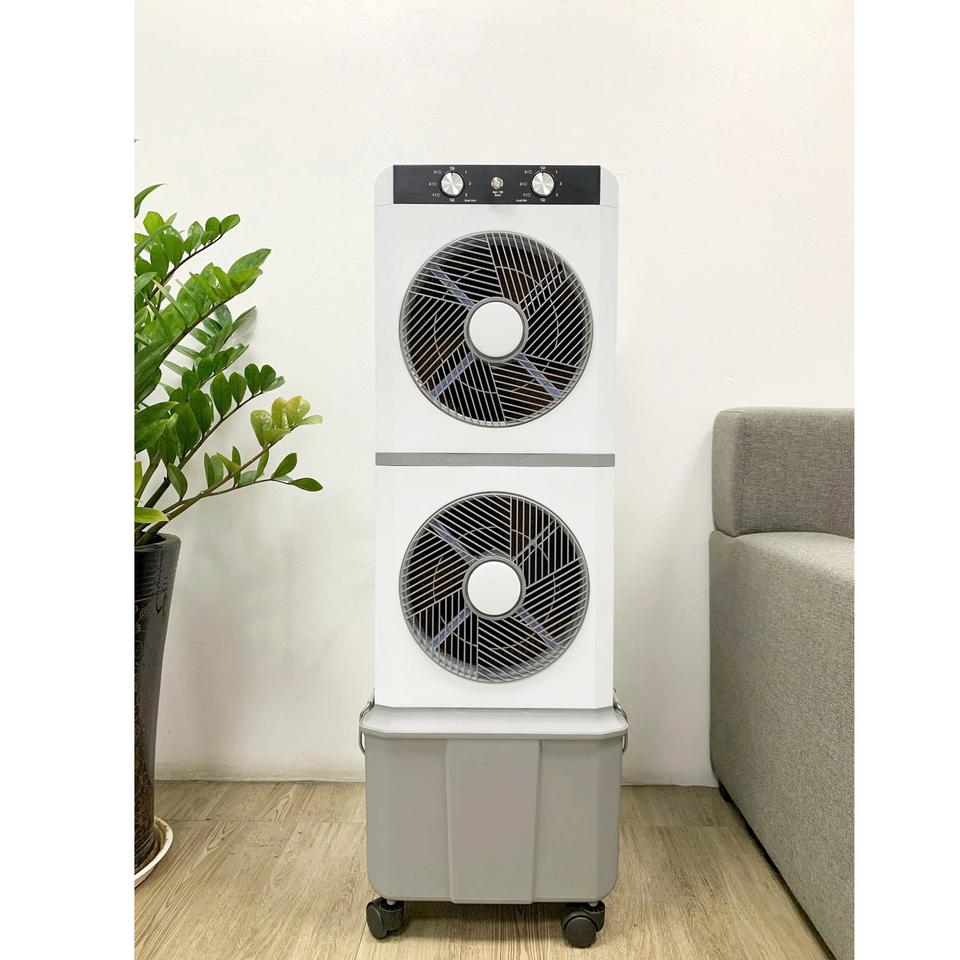 Enfriador de Aire Portátil Independiente de 210W, 60dB de Ruido, 3 Velocidades, Clase de Eficiencia Energética, Caja Doble Corrugada, Blanco Gris