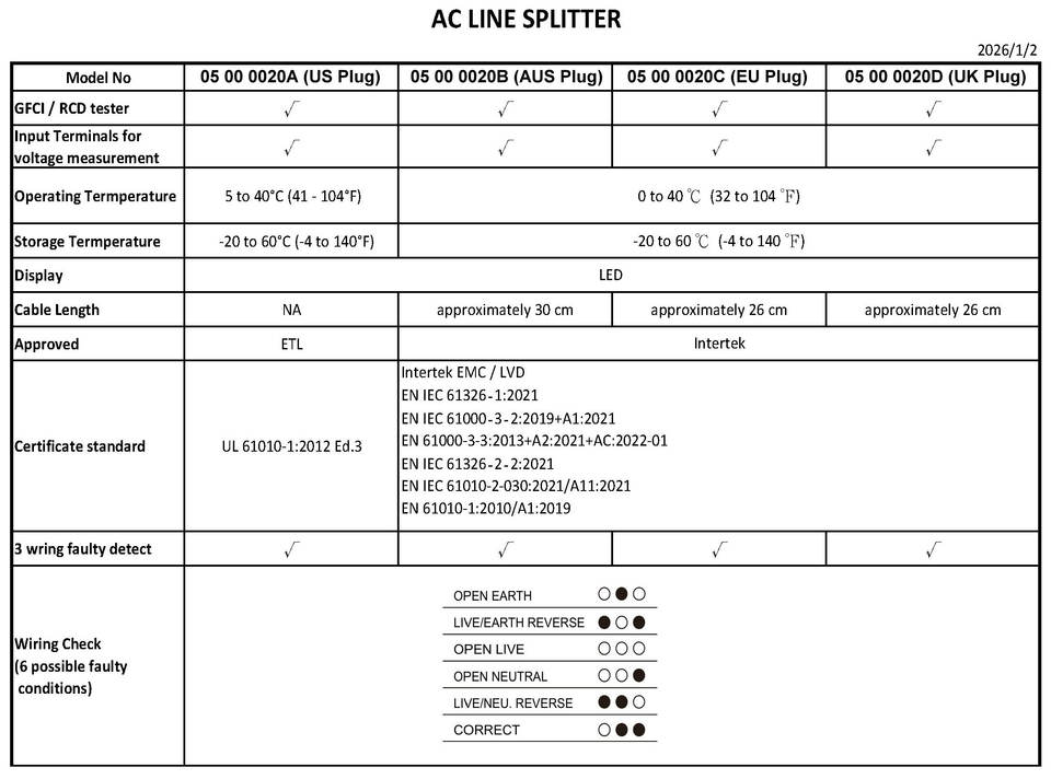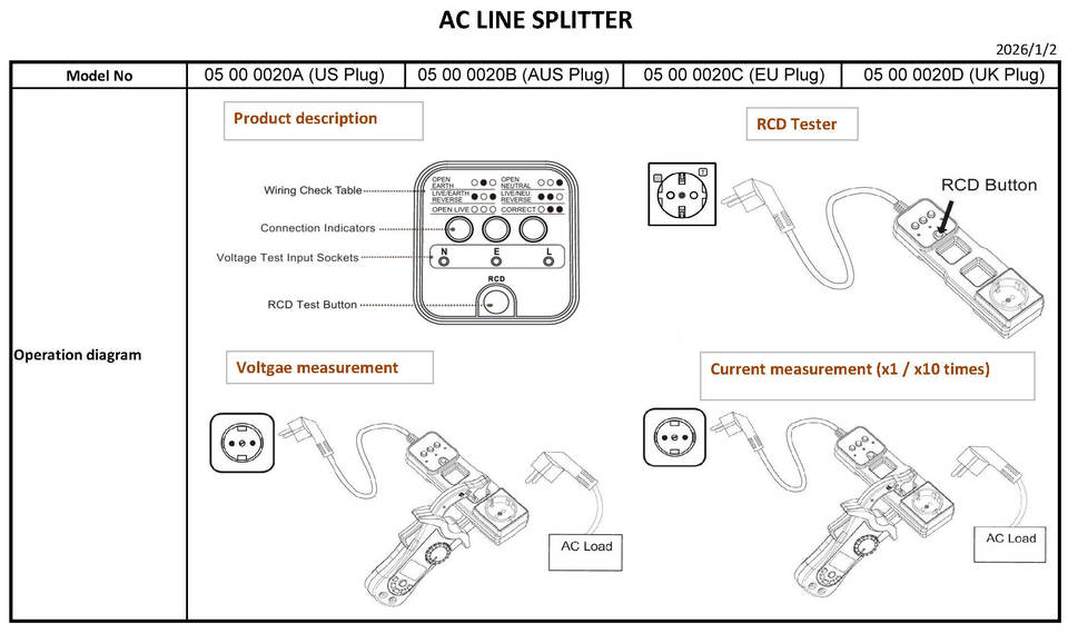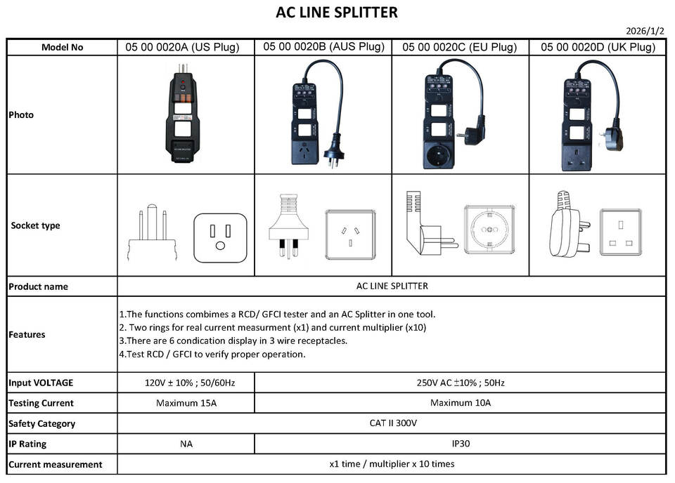 Divisor de línea de CA con prueba de enchufe y prueba RCD, OEM/ODM disponible