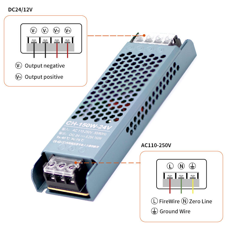 Fuente de Alimentación LED de CA a CC, 12V 24V 60W 100W 150W 200W, Convertidor para Tiras de Luces LED de Interior y Gabinetes