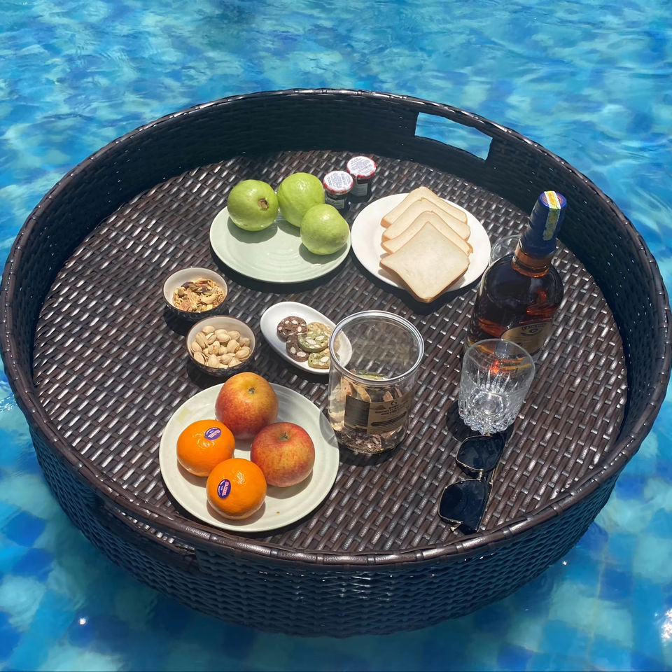 AC00033 Bandeja de desayuno flotante redonda de lujo Bandeja de servicio de metal para hoteles y villas para uso en piscina