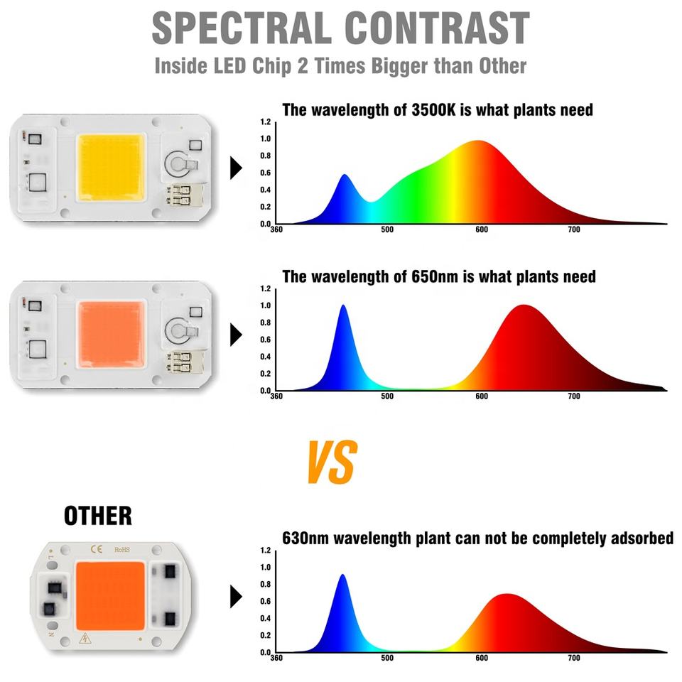 Lámpara de Cultivo LED COB de 30w con Chip LED AC220V, Espectro Completo para Cultivo de Plantas de Interior y Plántulas