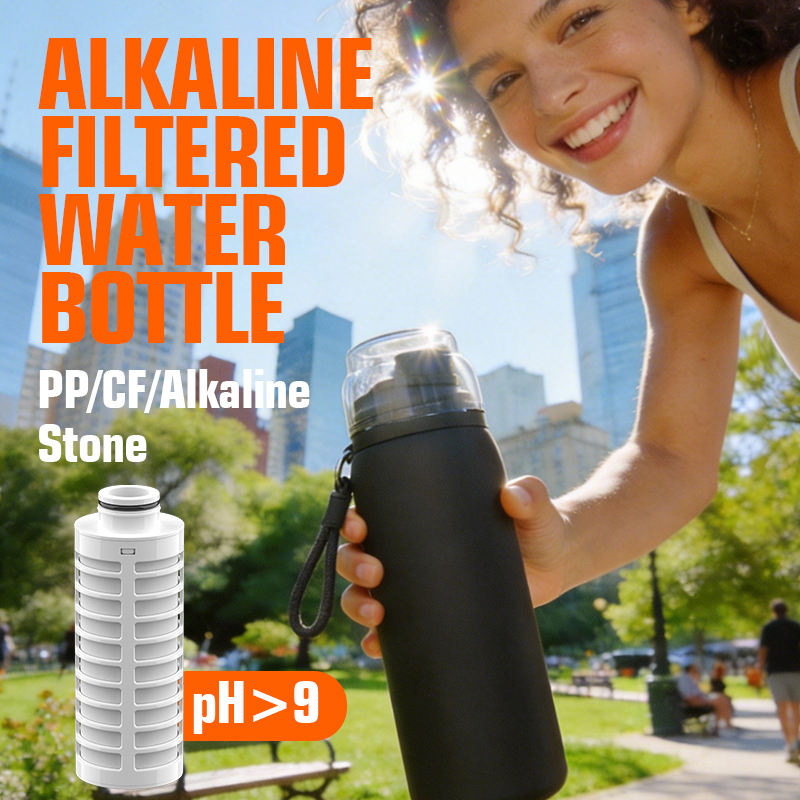 Cartucho de Filtro Compuesto de Doble Pared Alcalino ACF PH 9+, Botella de Filtro de Agua Portátil para Uso en el Hogar, al Aire Libre y Compatible con Automóviles