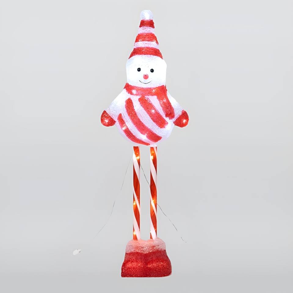 MUÑECO DE NIEVE ACRÍLICO CON RAYAS, 40 LED BLANCO FRÍO, 25X16 H. 75CM