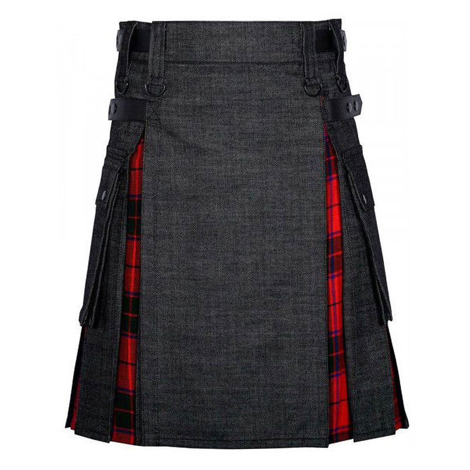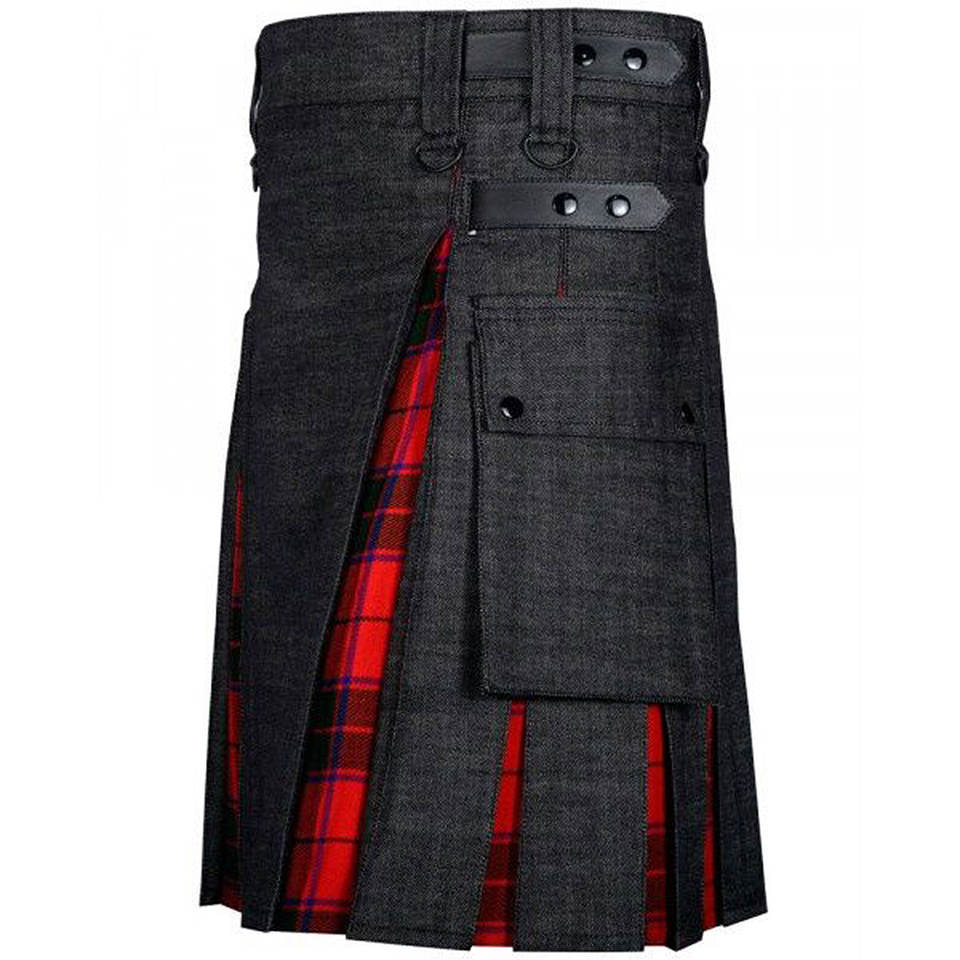 Kilt Utilitario Híbrido de Dos Tonos con Tartán Royal Stewart en el Interior, de Mezclilla Negra para Hombre Activo, 2026