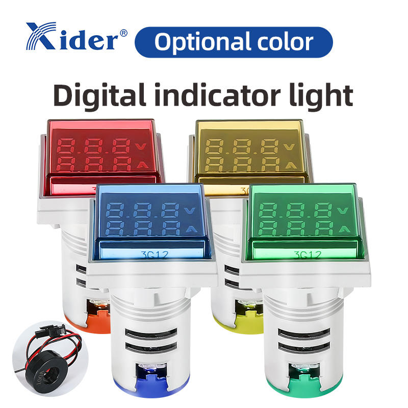Amperímetro cuadrado de LED de 22mm con luces indicadoras digitales duales, color blanco, tipo 2"