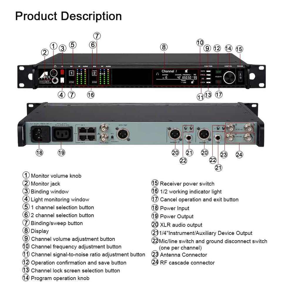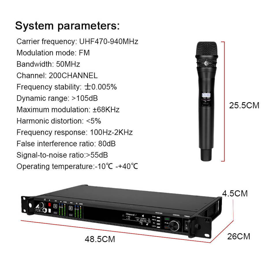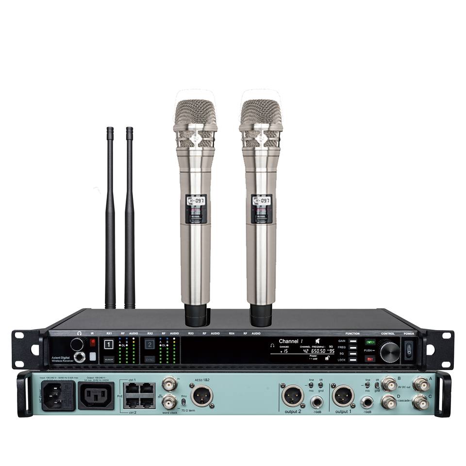 Sistema de Micrófono Inalámbrico UHF AD4D-3 al por Mayor – 200 Canales 512-690MHz Salida de 25mW Receptor de 2 Canales OEM Listo para Pedidos al por Mayor