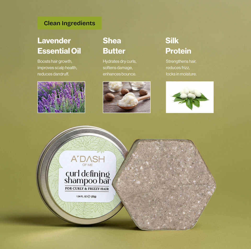 ADASH OF ME Champú en Barra Definidor de Rizos para Cabello Rizado y Encrespado, Limpiador Capilar Sólido Ecológico 55g, Ideal para Viajes