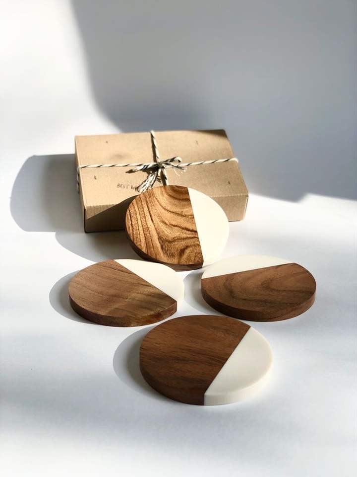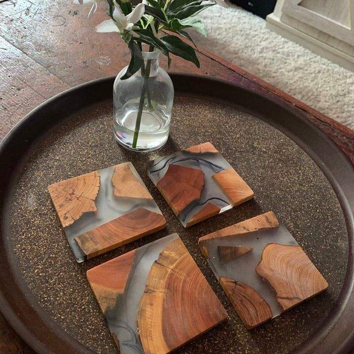 ADDIING Juego de Posavasos Cuadrados Modernos de Resina Epoxi y Madera, Hechos a Mano, Ecológicos, Personalizables, con Decoración de Efecto Oceánico para Uso Doméstico