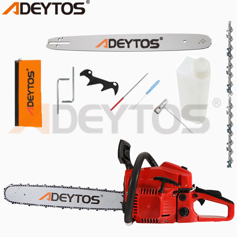 ADEYTOS OEM personalizable 52cc 58cc 2 tiempos Cadena de sierra de gasolina 3/8 barra de 24 pulgadas para corte de madera Industrial motosierra de gasolina