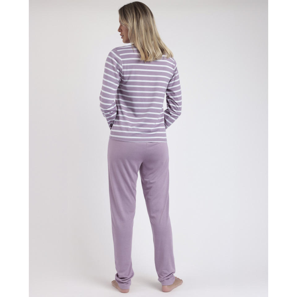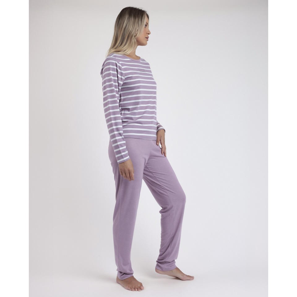 ADMAS HOME Cómodo pijama de rayas para mujer con mangas largas Cintura elástica Cierre de cordón XS Spandex Ropa de Casa transpirable