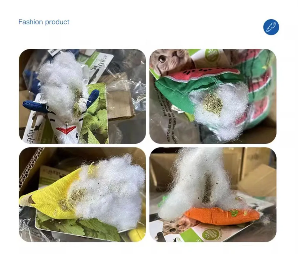 Polyester, Foam, Catnip, Cardboard, etc.