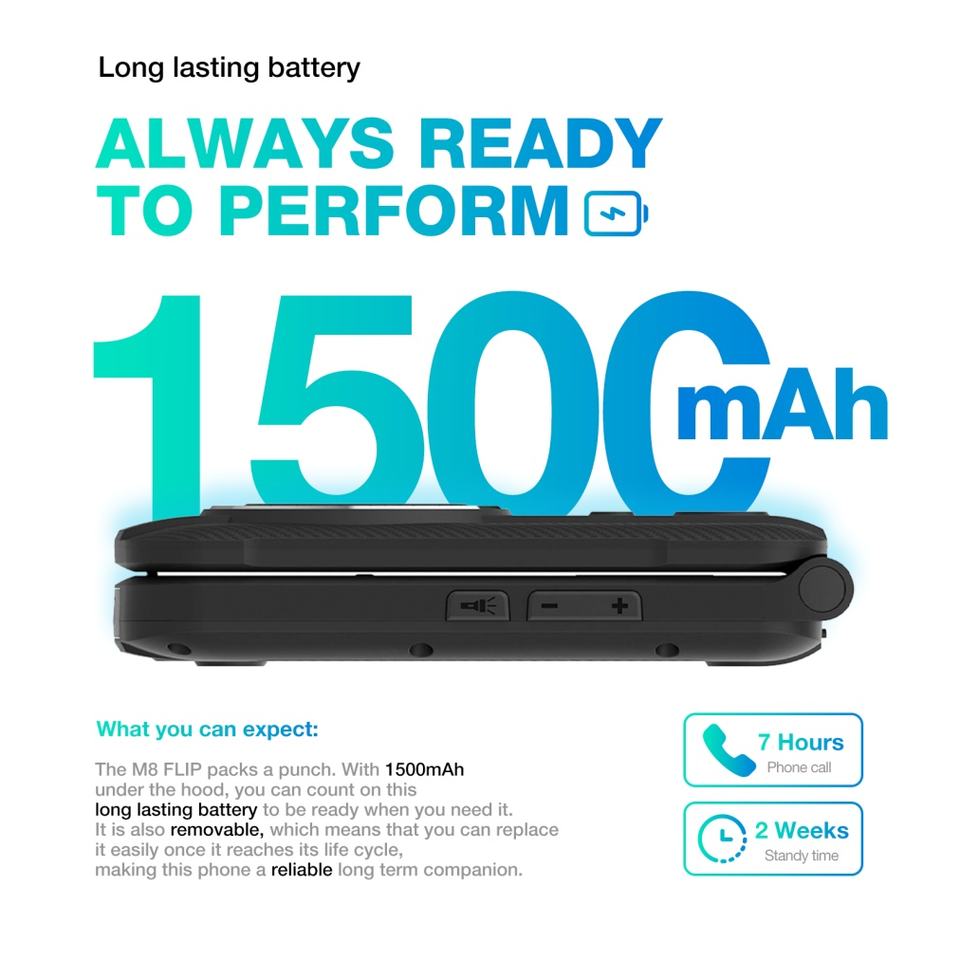 Teléfono Inteligente Resistente AGM M8 4G con Tapa, 48MB+128MB, 1500mAh, Pantalla Grande de 2.8 Pulgadas, Teclado Grande, SOS, Banda Global, Ecológico, Doble SIM