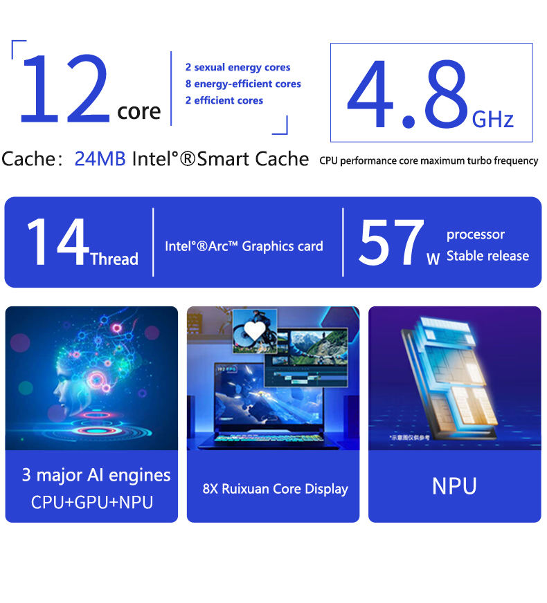 Mini PC con IA, Intel Core i5 de 14.ª Generación Ultra5-125H, 8 GB/512 GB SSD, Compacto, Windows 11 Pro, para Oficina, Juegos y Cine en Casa