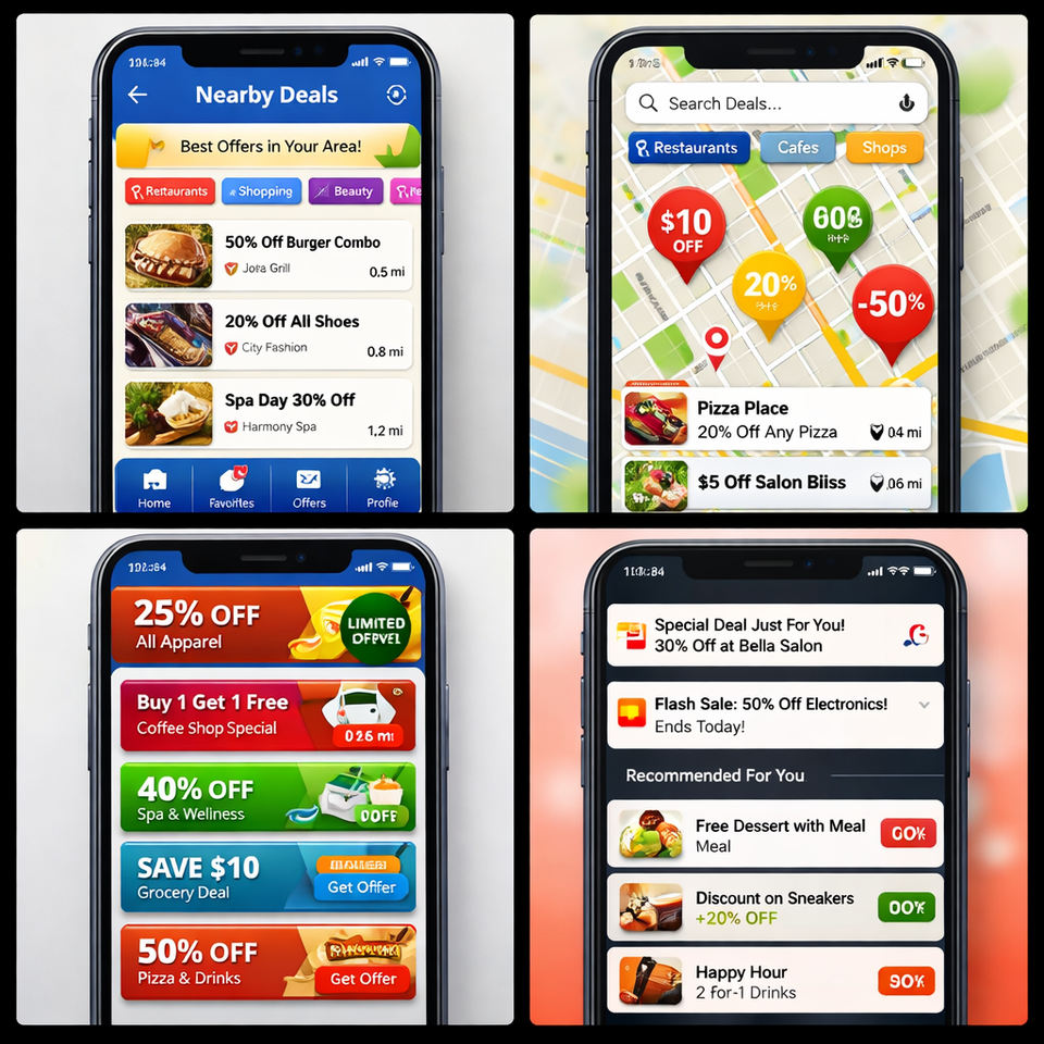 Desarrollo de Aplicaciones de Búsqueda de Ofertas Locales con IA, Servicio de Software Móvil para Android e iOS, Plataforma de Descubrimiento de Descuentos Personalizados