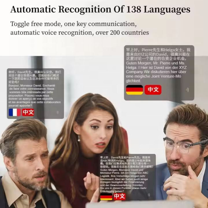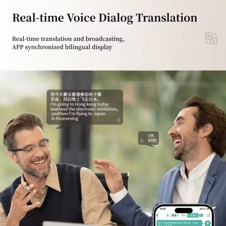 Gafas de Traducción con IA, Resistentes al Agua, Control por Aplicación, Multifuncionales, para Llamadas, Escuchar Música e Interpretación Simultánea 144