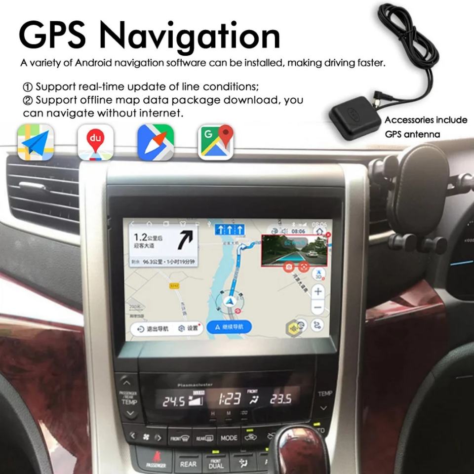 Navegación Android con Control por Voz AI para Toyota Vellfire 2011-2014 Alphard 20 A20, GPS, Carplay, Radio para Auto, Reproductor Multimedia de Video