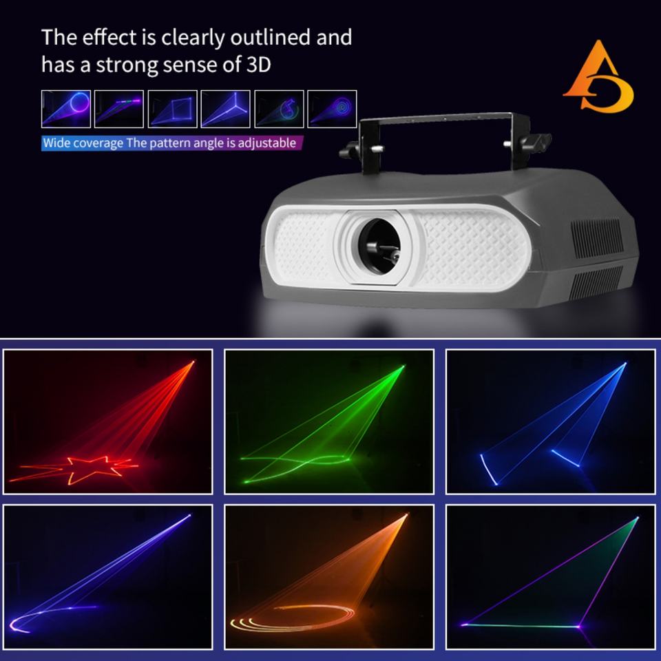 Luz Láser de Animación RGB 3D AICPOSE para Decoración de Escenarios de Bodas y Discotecas, Luz Láser de 2W