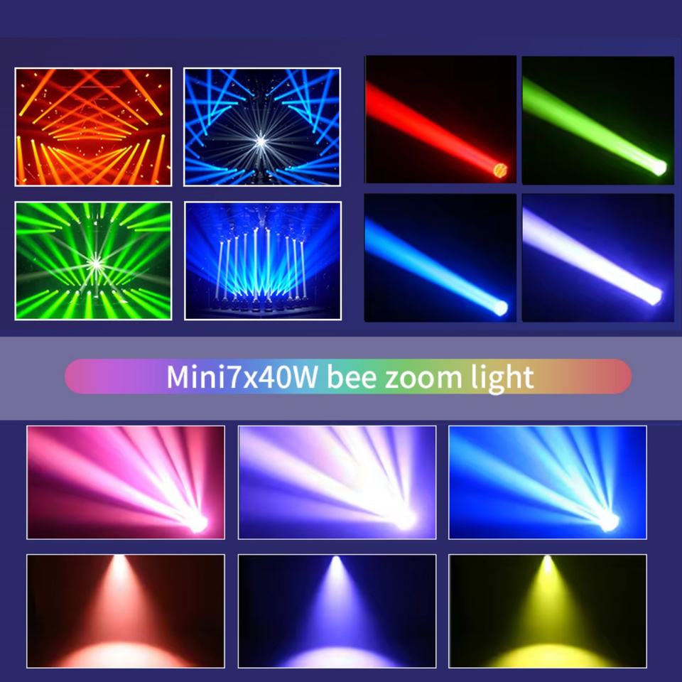 AICPOSE Mini Luz Móvil LED para DJ, Fiestas y Eventos, 7x40 RGBW, Luz de Escenario Móvil