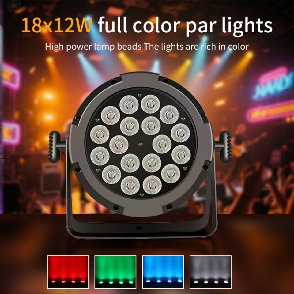 AICPOSE Iluminación Profesional, 18 Piezas, 12w RGBW 4 en 1, Luz Par con Zoom, Resistente al Agua, para Exteriores, LED