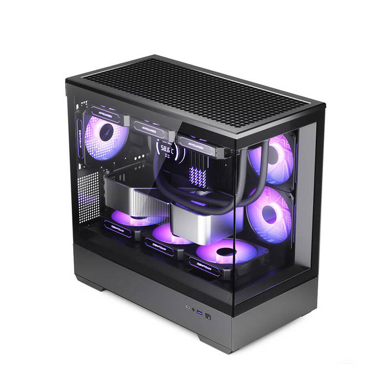 Caja de PC AIGO Micro ATX con Soporte para Múltiples Ventiladores, Cristal Templado de 360 mm, Caja Vertical para Juegos con Soporte para Placa Base, para Gamers