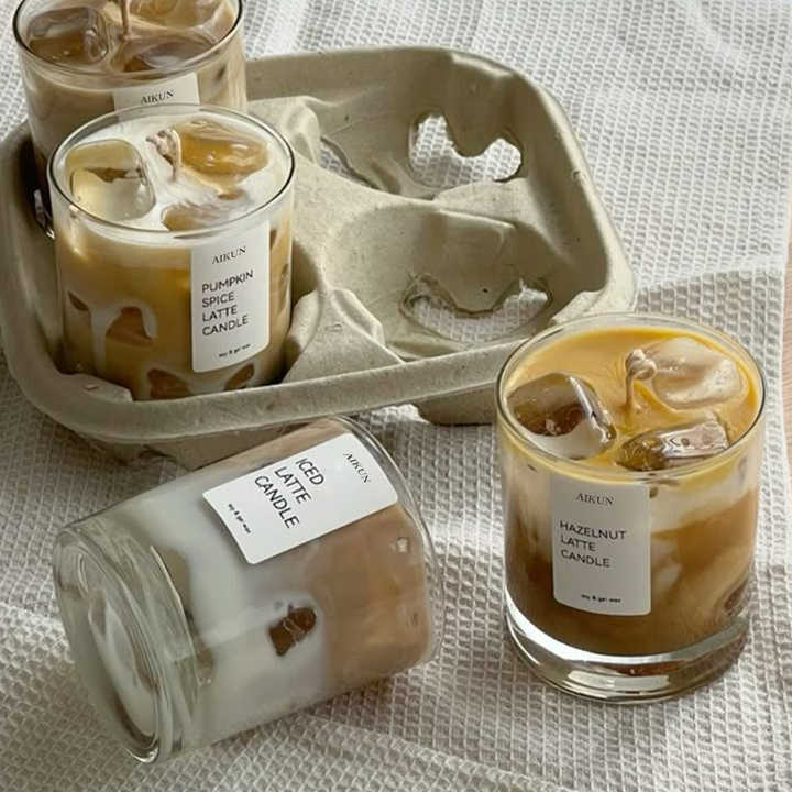 Vela Aromática AIKUN con Aroma a Latte Helado, Vela de Cera de Soja en Frasco de Vidrio, Vela Perfumada para el Hogar y la Cocina
