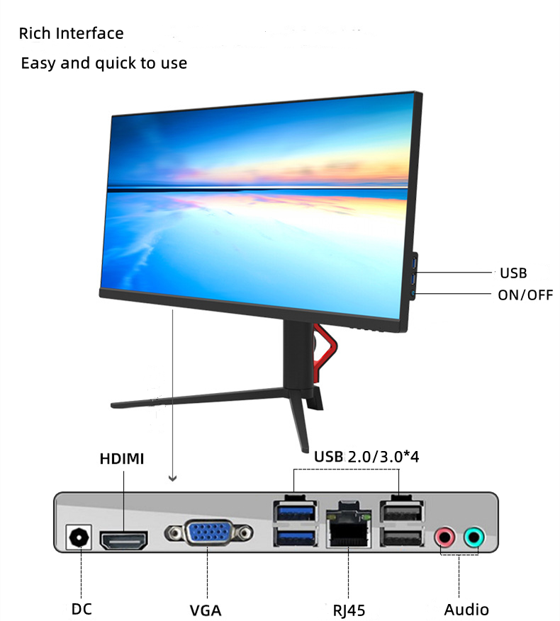 AIO Computer Factory Pantalla de computadora de 30 pulgadas 2K Nuevo Intel I5 I7 All In One Gaming Desktop Pcs Monitor de 165GHZ
