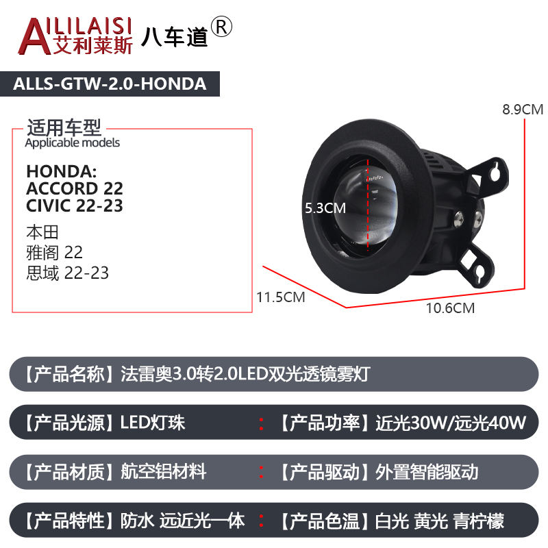 AIlilaisi aplicar 2,0 pulgadas lámpara antiniebla lente proyector luces Bi Led para Honda Accord Civic 22-23 impermeable y antivaho Ultra brillante