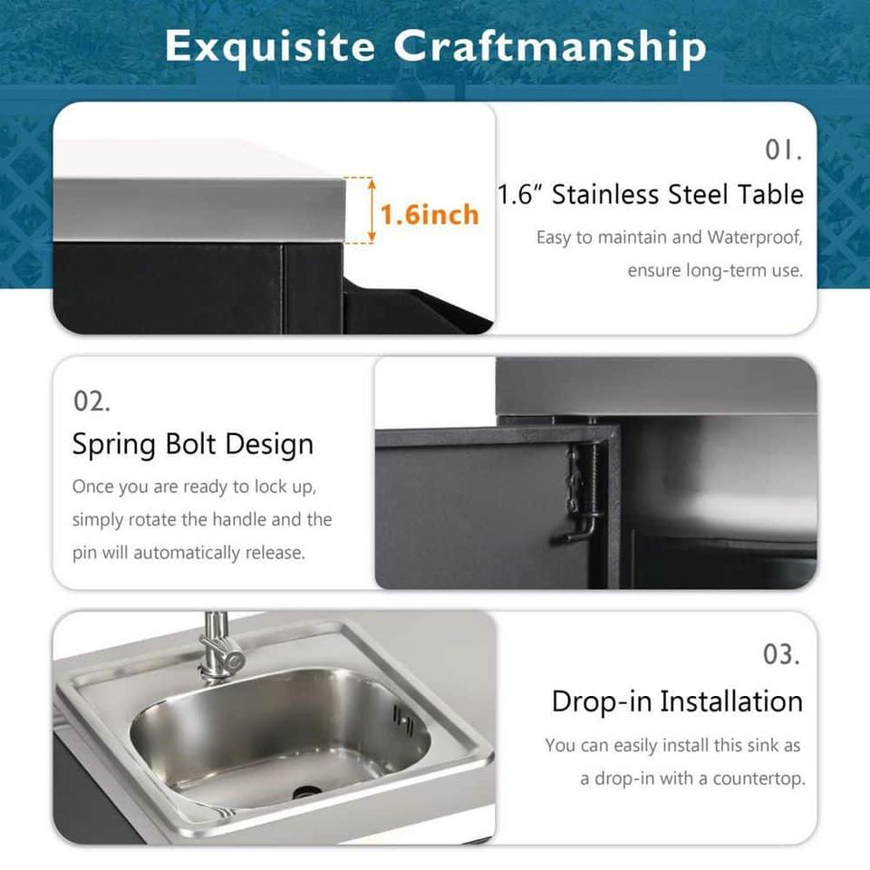 Isla de Cocina Exterior AJUNION con Fregadero Integrado de Acero Inoxidable 304, 4 Ruedas Bloqueables, Mesa Móvil para Parrilla para Cocina Exterior
