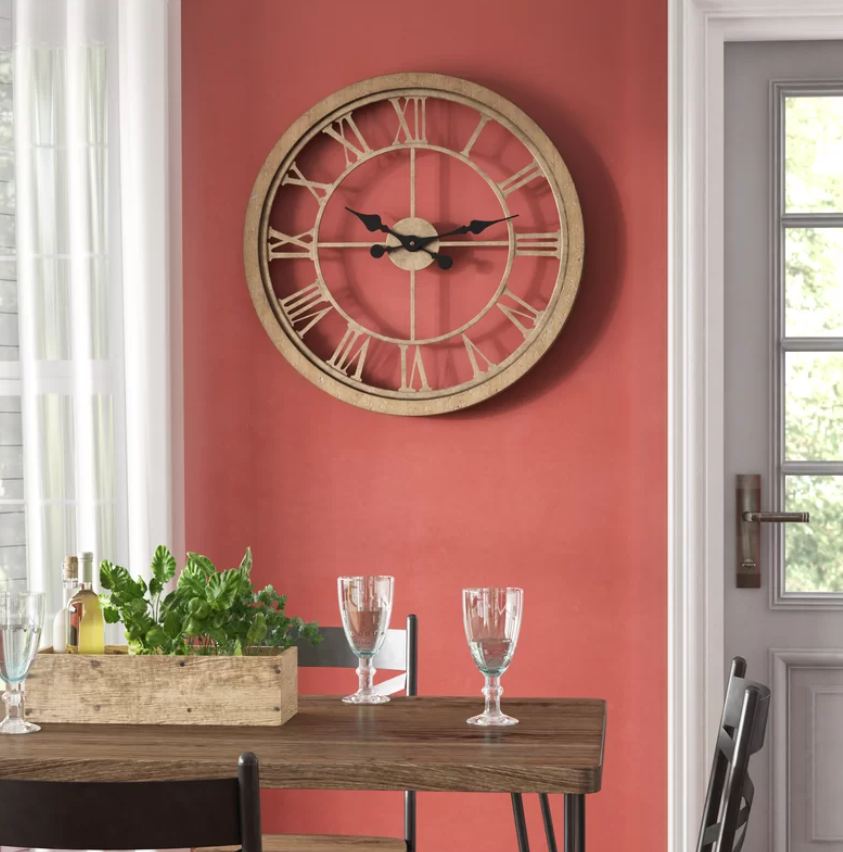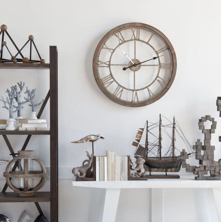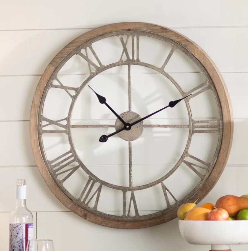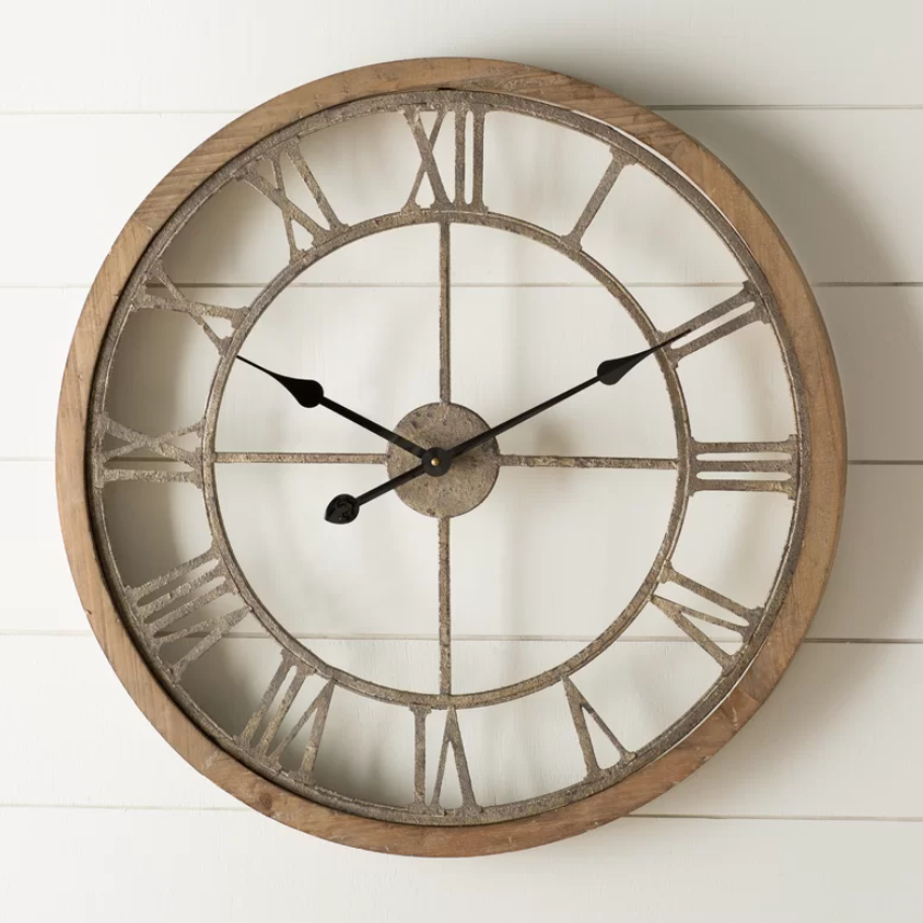 AK latón Premium madera Mango Acacia marco de madera hierro Metal antiguo reloj de pared romano cuarzo tipo motivo para decoración del hogar abstracto