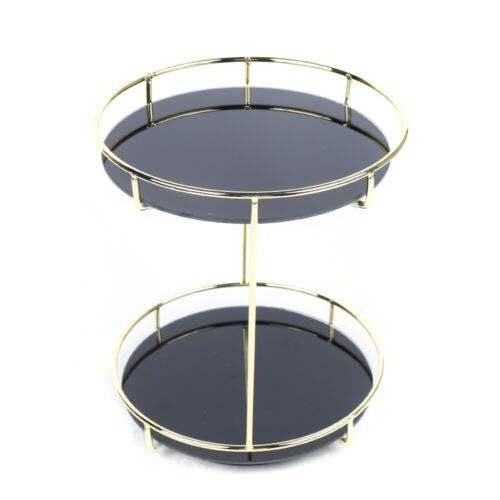 Estante de Perfume de Metal redondo de latón AK en marco acabado dorado con 2 niveles de vidrio negro para decoración de Hotel/decoración Interior del hogar