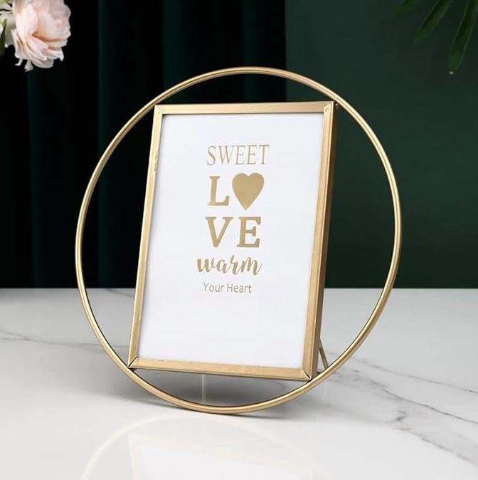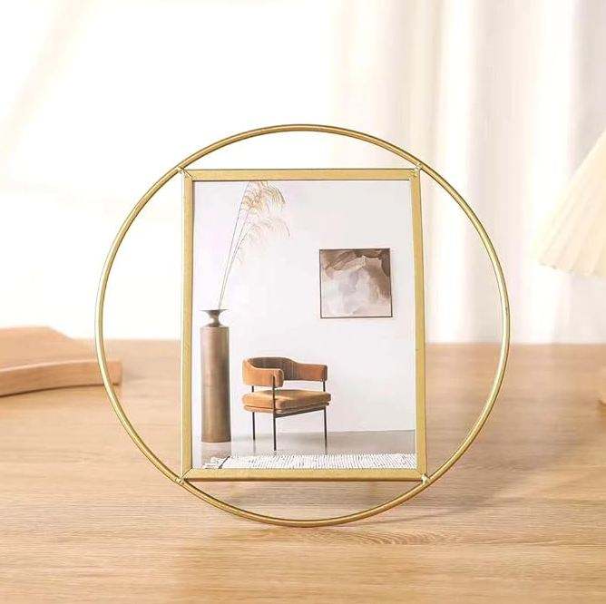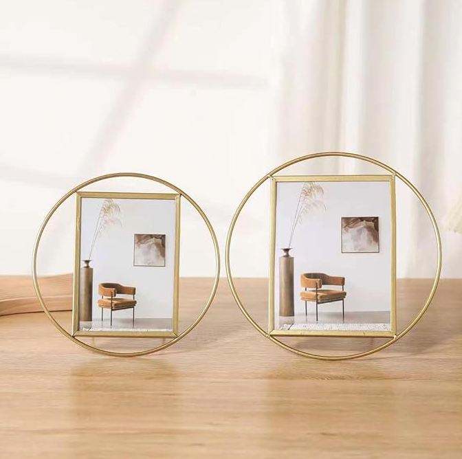 Marco de fotos de metal de forma redonda de latón AK en artículo de alta calidad con acabado dorado para decoración interior del hogar