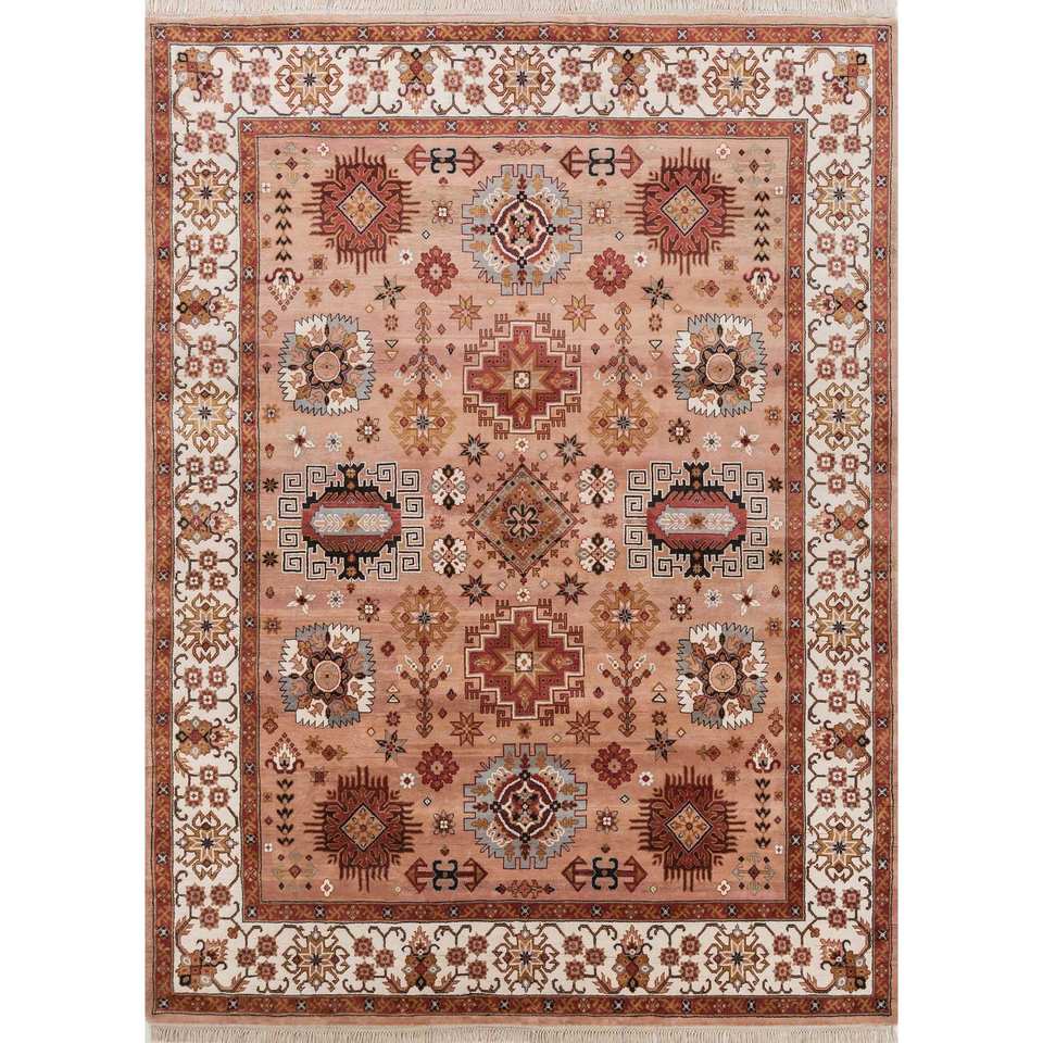 Alfombra de Seda Anudada a Mano AKPS-13003, Diseño Rectangular Abstracto con Medallón Rojo Naranja, Patrón Tabriz, para Uso en el Hogar, Entrada, Pasillo, Sala de Estar