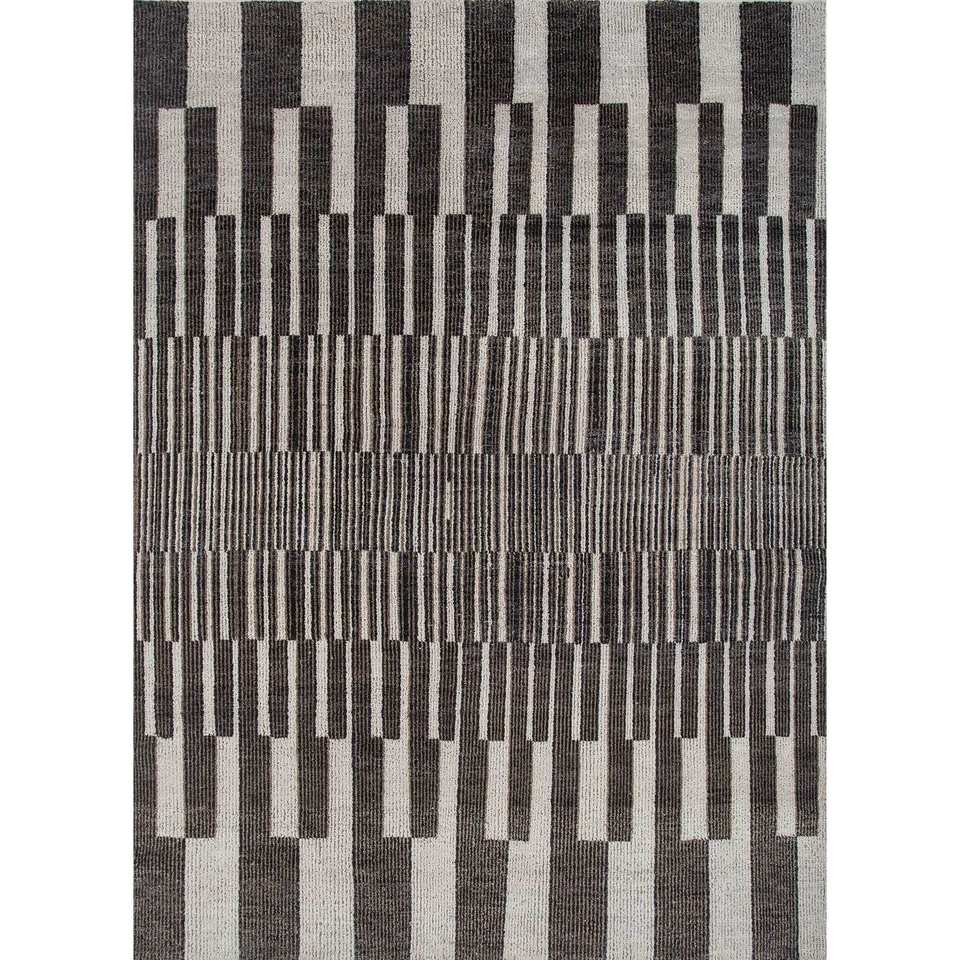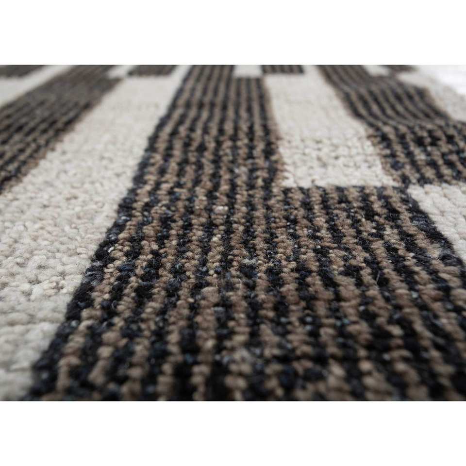 AKWL-1659 Alfombra de Lana Anudada a Mano, Diseño Geométrico Gris y Negro, para Sala de Estar, Pasillo, Entrada, Estilo Rompecabezas Rectangular, Nueva