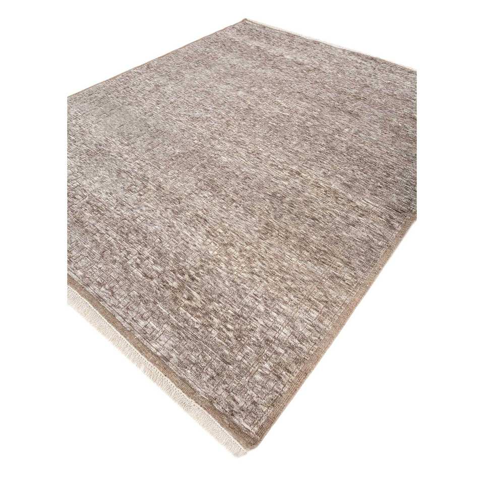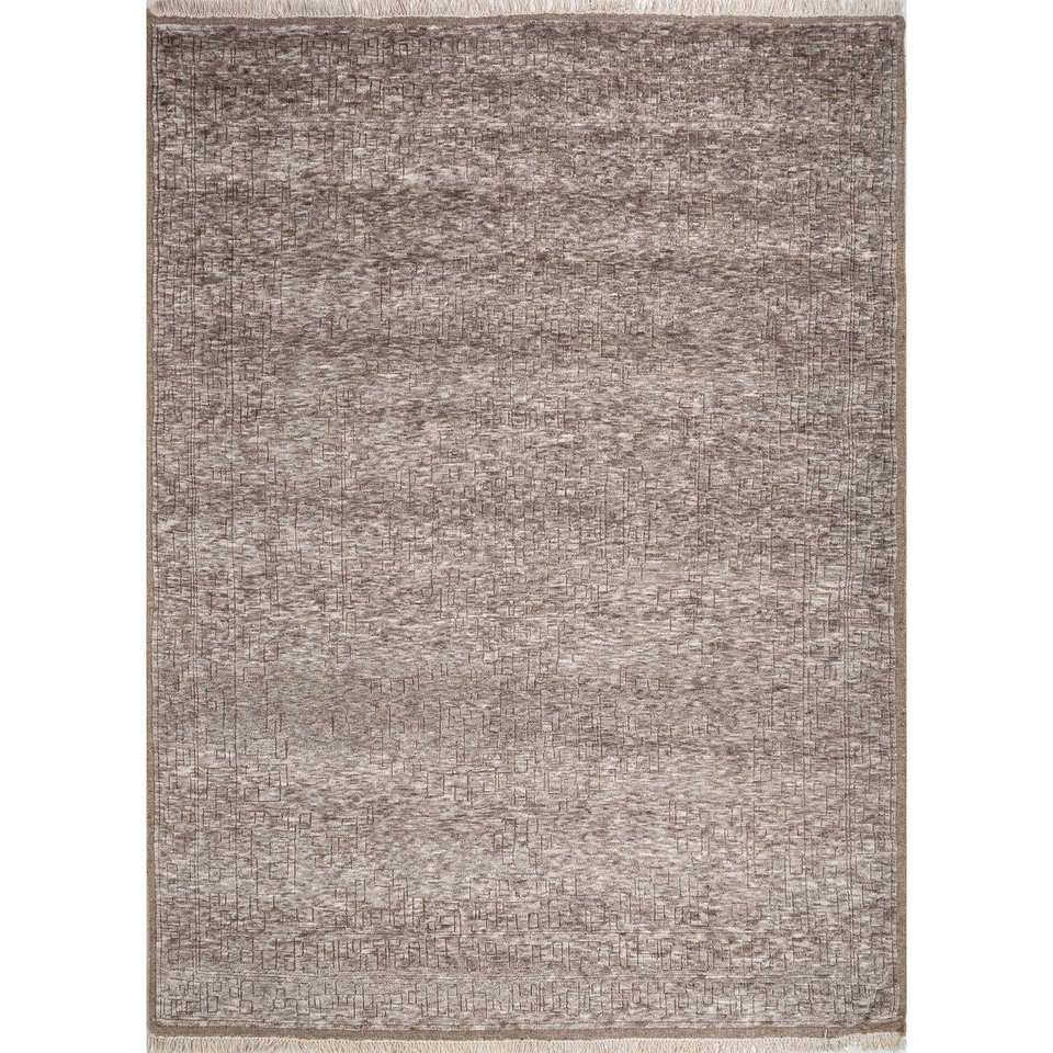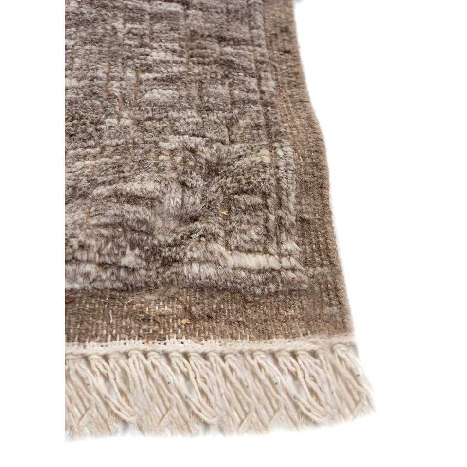 Alfombra de Lana Anudada a Mano AKWT-1059, Diseño Abstracto Beige Marrón, Alfombra Rectangular de Yute con Forma de Rompecabezas para Sala de Estar, Hogar y Auto