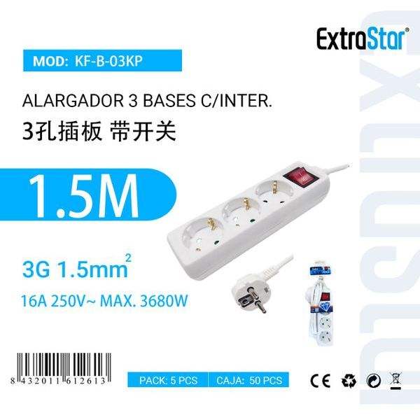 Bloque de Enchufes de 3 Orificios con Interruptor de 1.5M, Piezas para Electrodomésticos, Interconexión de Base