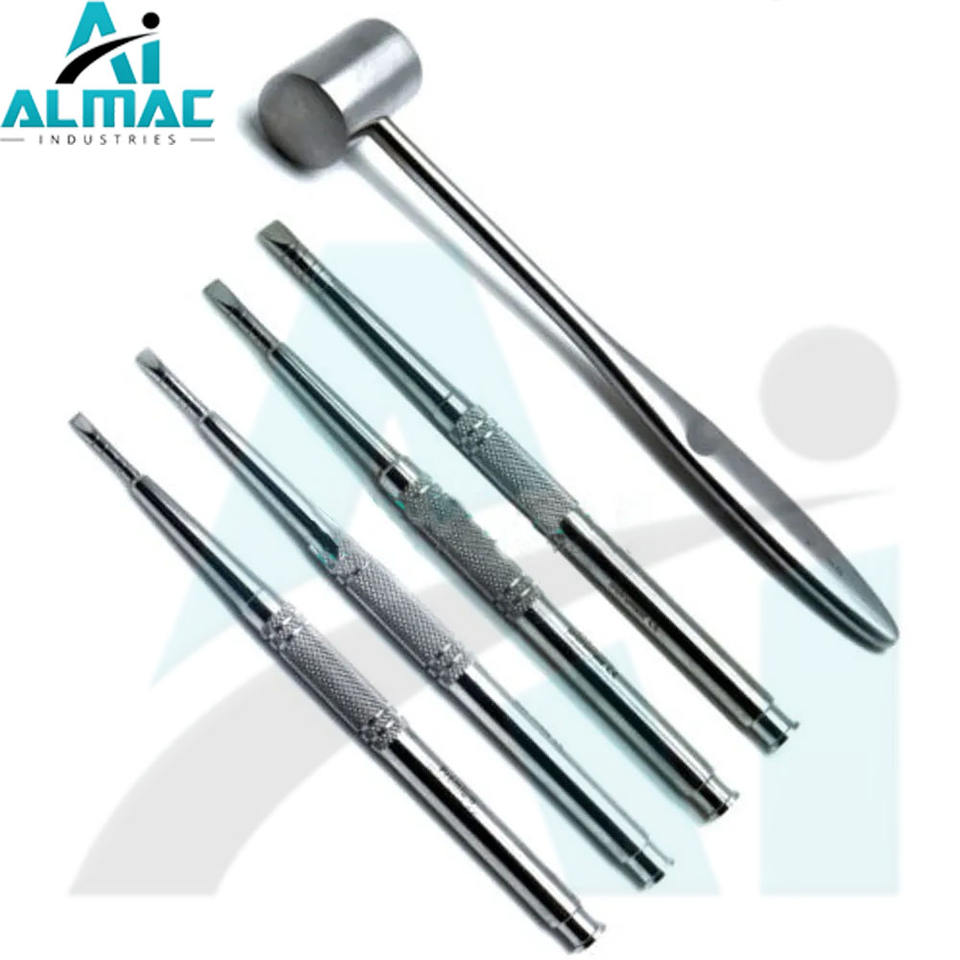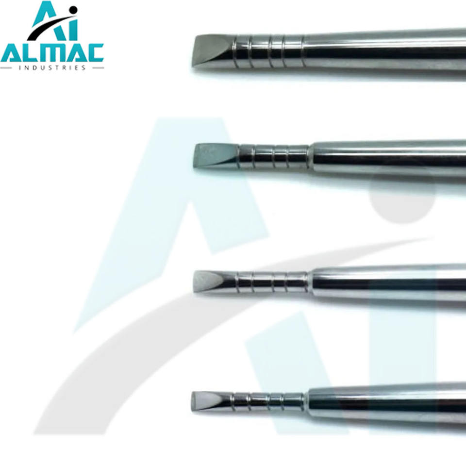 ALMAC Original Dental Ridge Split Chisel alemán de acero inoxidable Preparación de implantes dentales y cirugía ósea 4 piezas Set