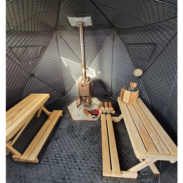 Carpa de Sauna Portátil Ligera ALMI-Flex, Impermeable, de Triple Capa, con Dos Habitaciones, para Acampar al Aire Libre en Tres Estaciones