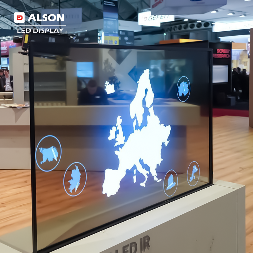 Panel de Pantalla LED de Transferencia Interior con Ahorro de Energía ALSON con Pantalla de Película LED Transparente, Adecuado para Eventos en Centros Comerciales