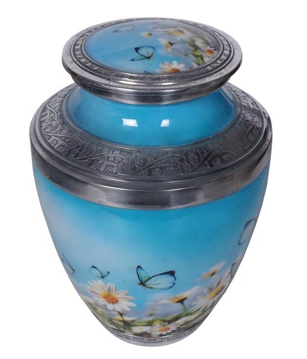 Urna de cremación de aluminio para cenizas, urna de cremación con acabado de imagen para adultos