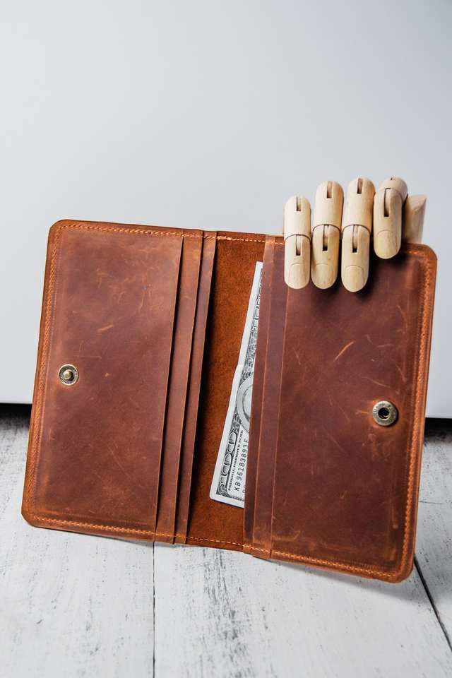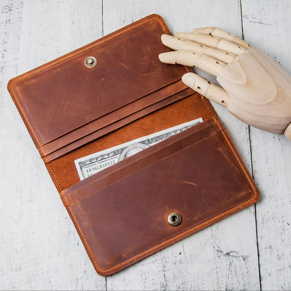 ALW Factory personalizado de lujo de los hombres de largo Vintage completo de cuero genuino botón portátil tarjetero monedero personalizado LOGO carteras