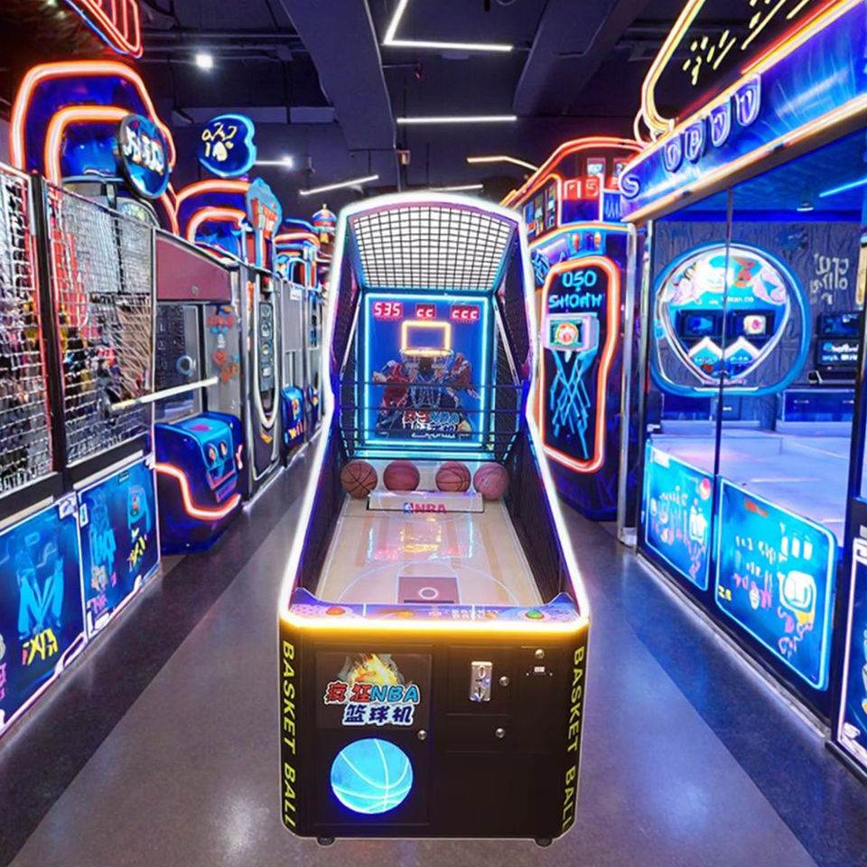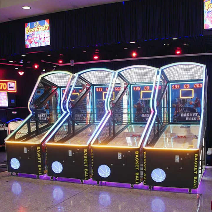 Máquina de juego de baloncesto de entretenimiento AMA, máquinas de baloncesto de arquería comercial para interiores que funcionan con monedas para centro de juegos
