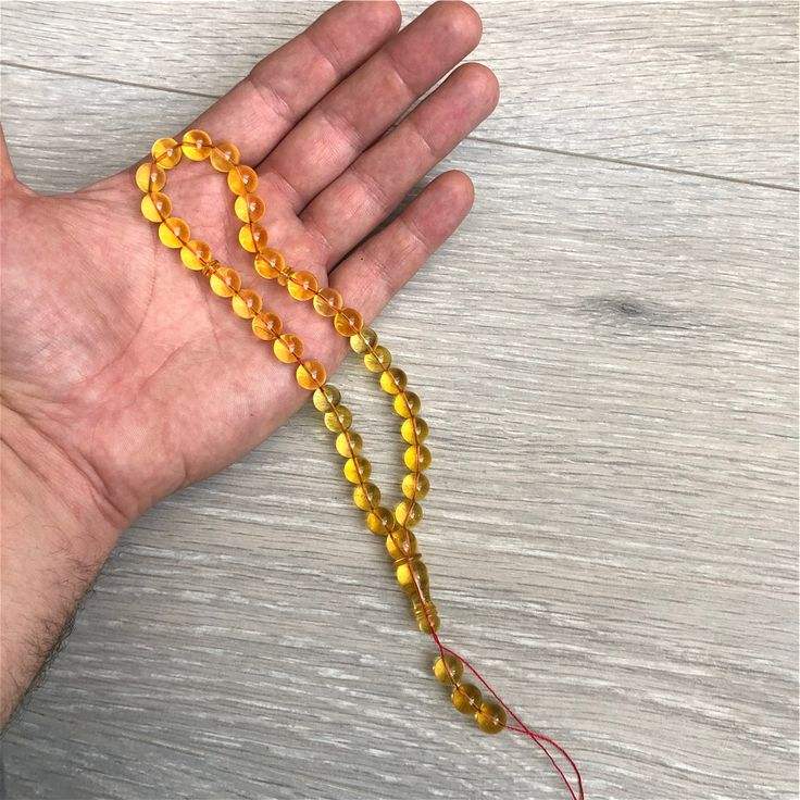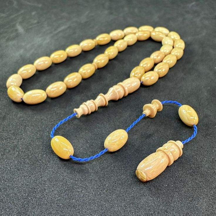 Rosario Musulmán de Resina Ecológica Hecho a Mano con Cuentas de Ámbar y Turquesa, Joyería Religiosa