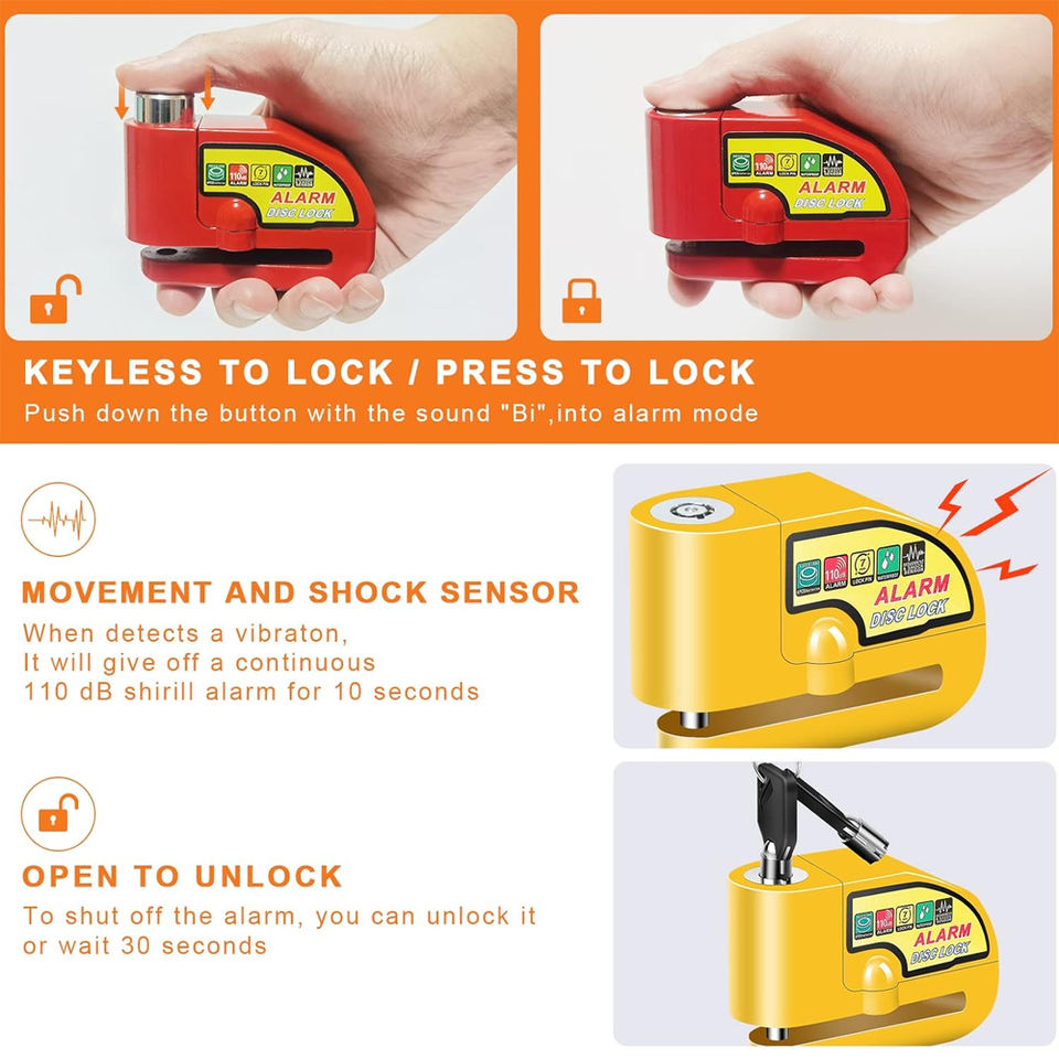Alarma Antirrobo para Motocicleta AMBITION, Bloqueo de Disco de Freno, Seguridad para Ruedas, Resistente al Agua, Sonido de Alarma de 110dB
